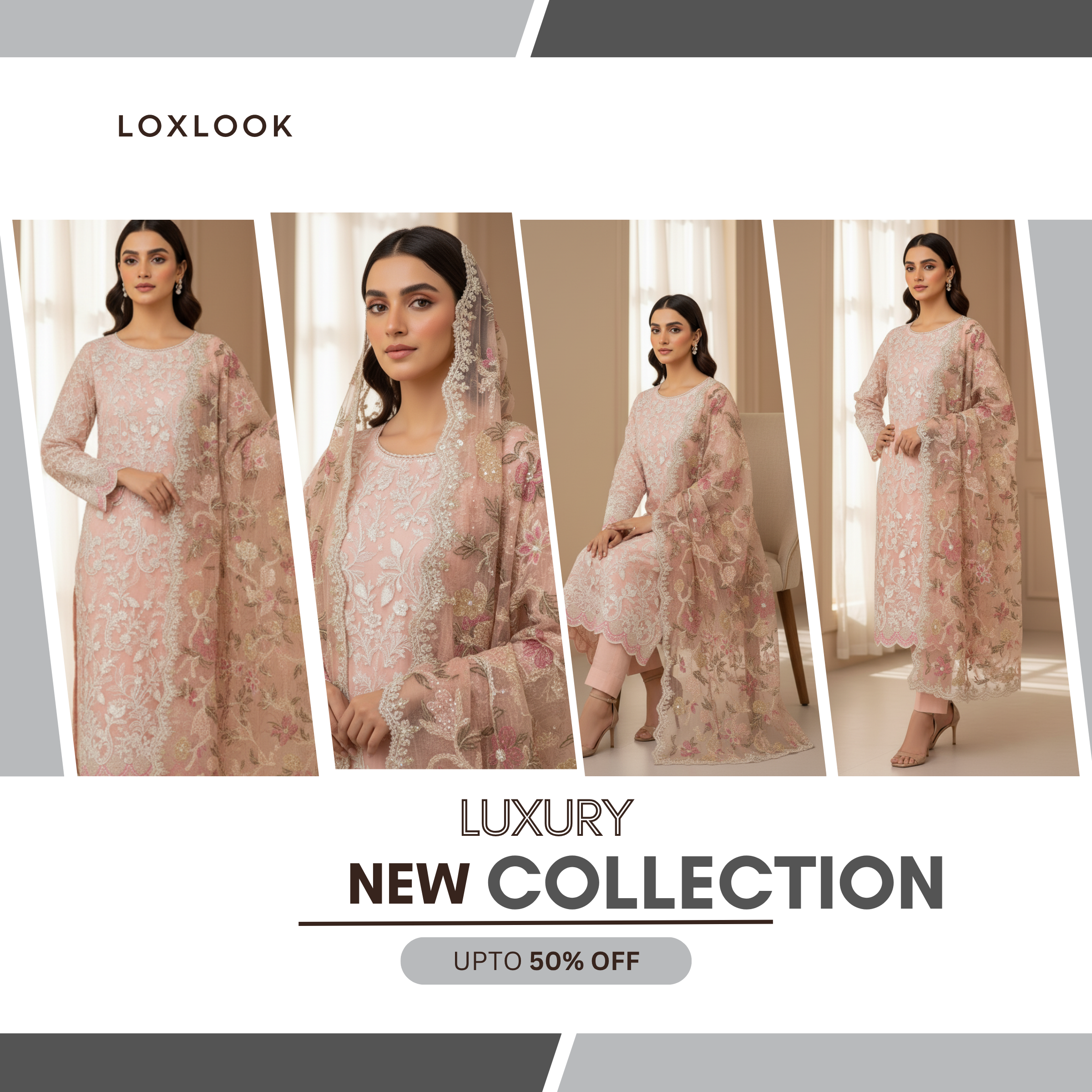 “Luxury Peach Pink Karandi Net Bridal 3-Piece Suit with Heavy Front Embroidery & Sequin Work | Limited Edition Color”